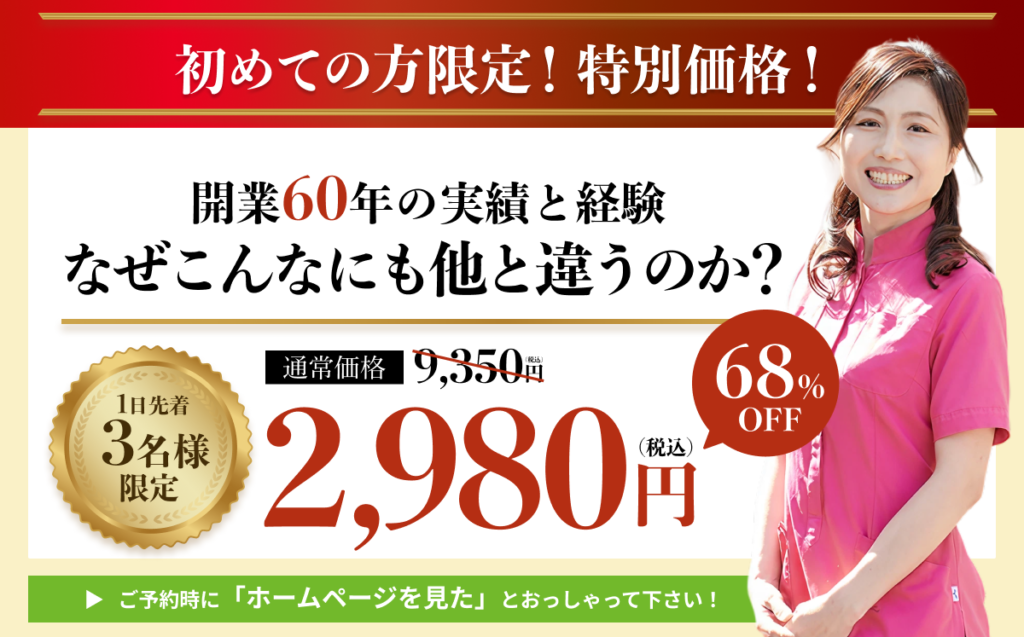 | 初診時(毎月15名限定) | 2980円 |