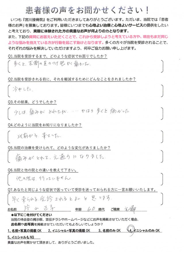 その時から足にシビレがあり立つことさえ痛くて困っていました。