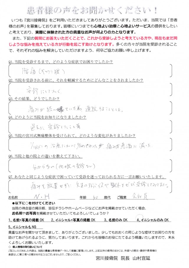 西宮市 | 宮川接骨院で施術を受けられた方からの喜びの声を掲載!阪急西宮北口駅から徒歩5分