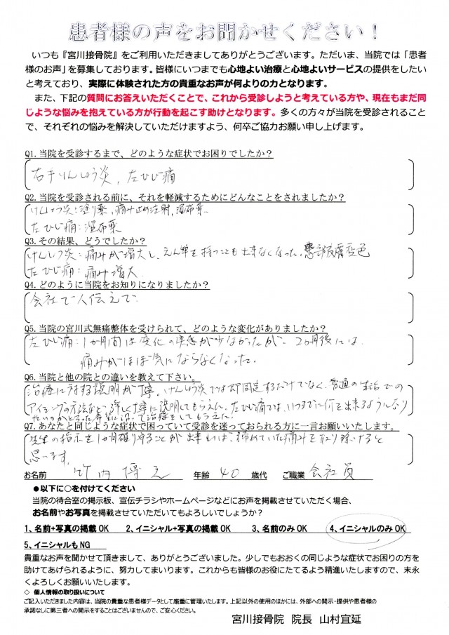先生の治療と指示を守る事が出来たら諦めていた痛みを取り除けると思います